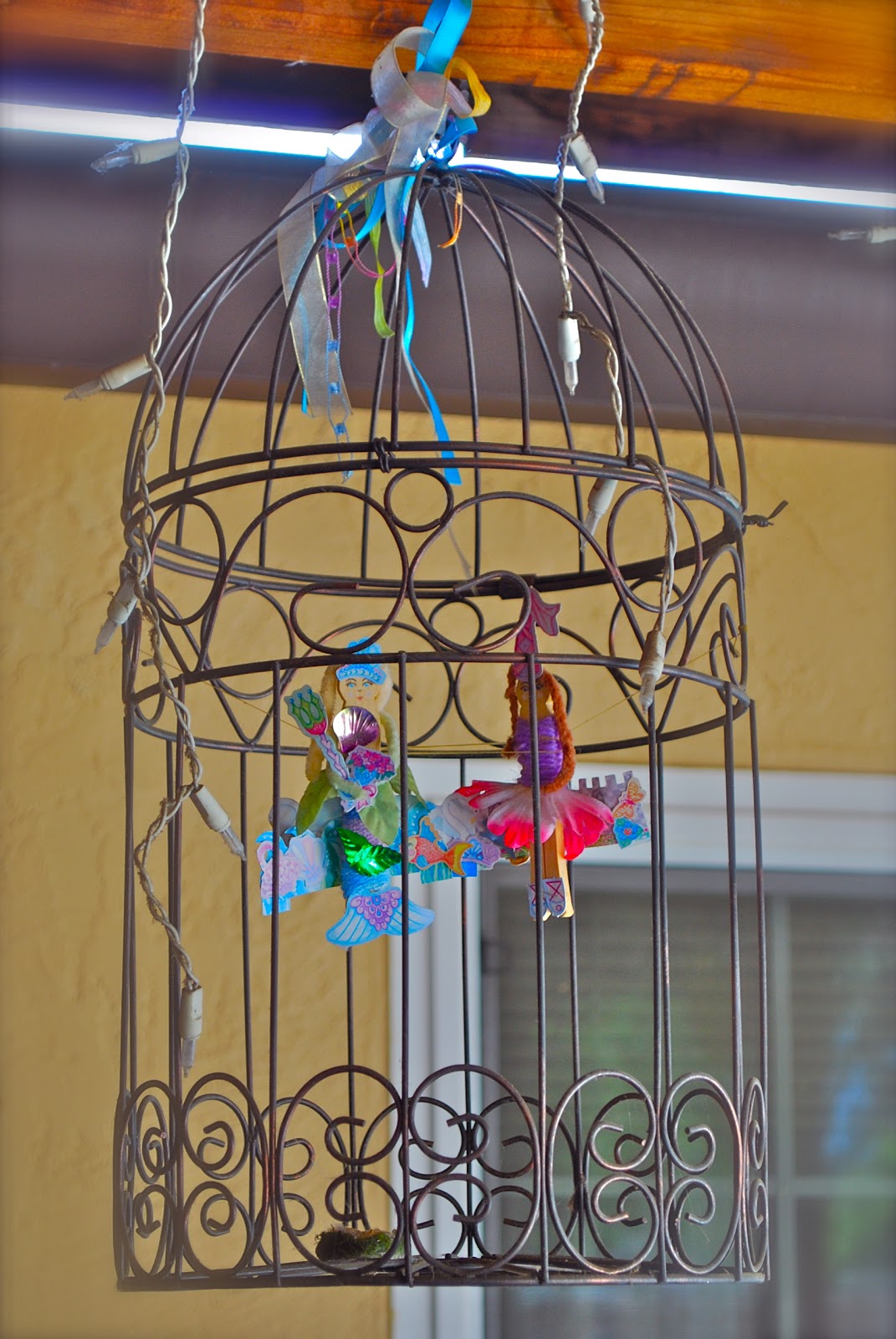 P.S. Who ever heard of a wild bird putting herself INTO a decorative cage? Especially when there are several protected areas around the yard...